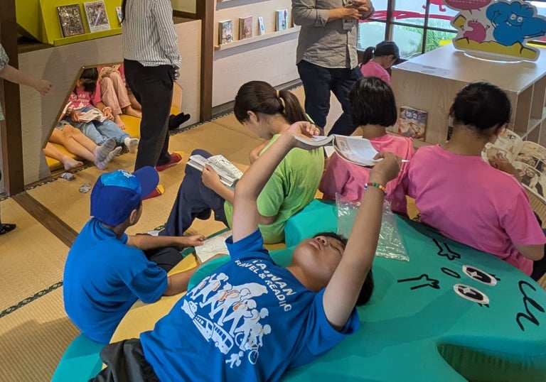 Retrouvez un espace de lecture pour se poser tranquillement à lire une bande dessinée, confortablement installé.