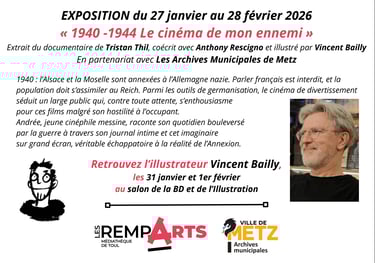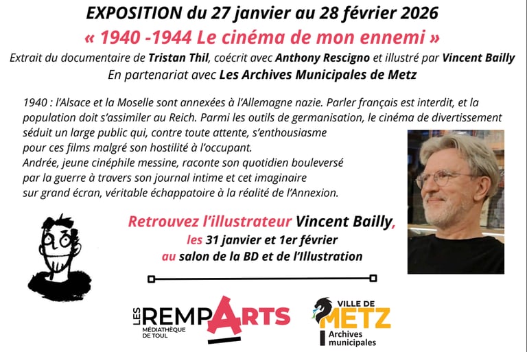 La médiathèque de Toul accueillera une exposition consacrée au travail de Vincent Bailly autour du documentaire 1940-1944 : le cinéma de mon ennemi.
